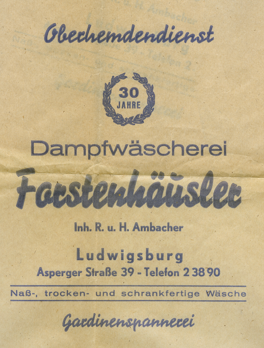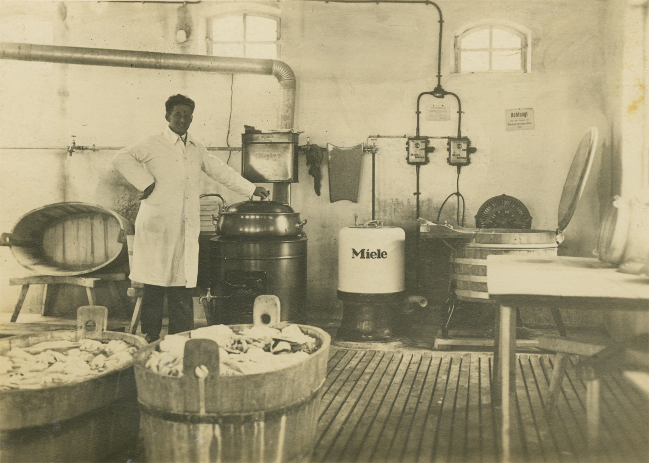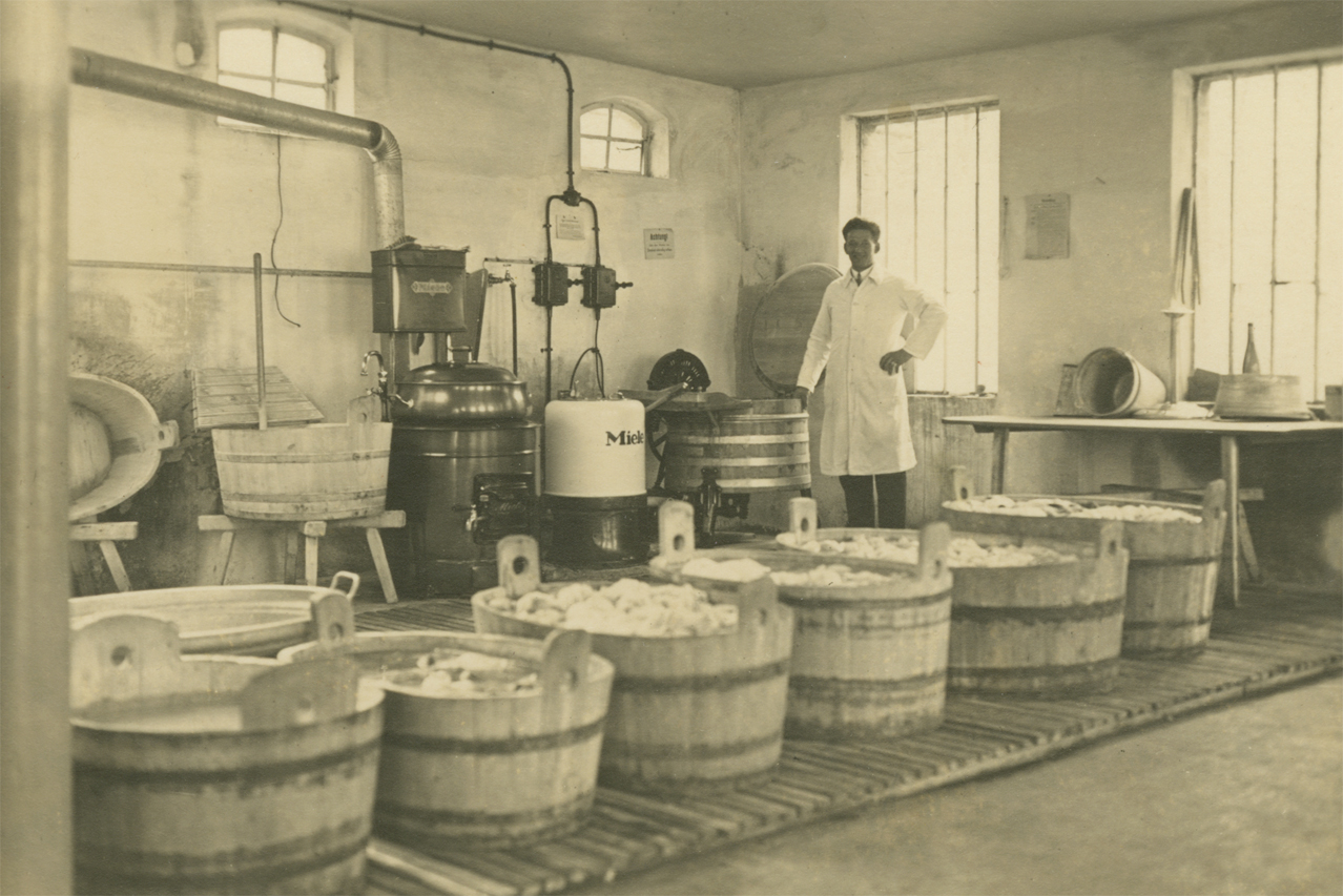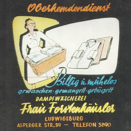 Bereits 1934 legte Vinzenz Forstenhäusler, der Großvater des heutigen Chefs, den Grundstein für unserer Wäscherei Forstenhäusler in Ludwigsburg. Damals wurde für zumeist Privatkunden Wäsche in einfachen Maschinen oder Bottichen gewaschen und sogar wieder bügelfeucht ausgeliefert – eine typische Mietwaschküche. Ursprünglich in der Hoferstraße angesiedelt, folgte schon bald der Umzug in die Asperger Straße. Nachdem Vinzenz Forstenhäusler 1939 zum Krieg eingezogen wurde, führte seine Frau Josefine den Betrieb weiter und übernahm ihn nach dessen Tod 1945 ganz.